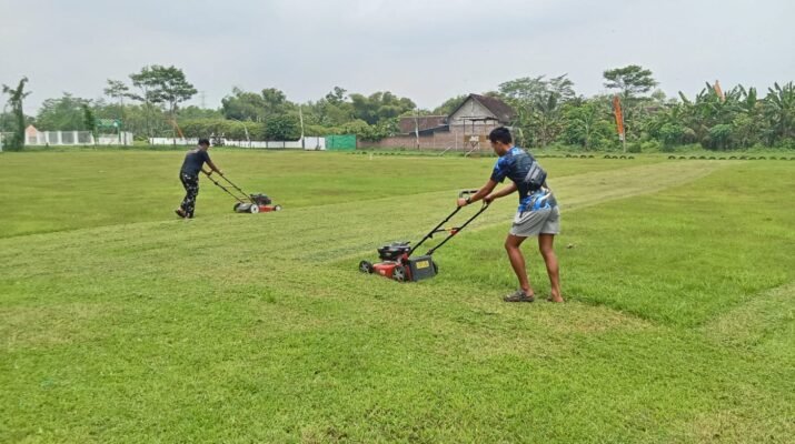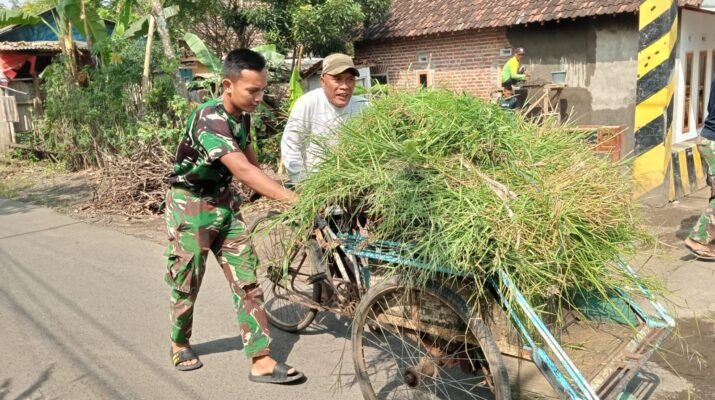 Di bawah terik matahari siang, seorang prajurit TNI menunjukkan semangat gotong royong. Praka Angga, anggota Satgas TNI Manunggal Membangun Desa (TMMD) Ke-127 Kodim 0819/Pasuruan,