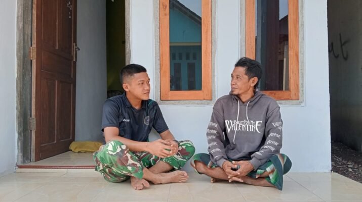 Suasana hangat terasa di teras rumah Ibu Aisyah, Dusun Ngepreng, Desa Wonosari, Kecamatan Gondangwetan, Kabupaten Pasuruan, Senin (9/3/2026). Usai bekerja dalam program TNI Manunggal