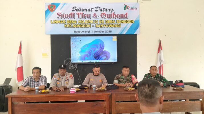 Songgon – Serka Eko Purwanto, Babinsa Koramil 0825/20 Songgon, menghadiri dan melaksanakan pendampingan Studi Lapangan dalam rangka Peningkatan Keterampilan Sumberdaya Anggota Linmas dan Program Linmas Desa Mojorejo, Kecamatan Junrejo, Kabupaten Kota Batu Malang, pada Sabtu (11/10/2025) pukul 08.00 WIB di Pendopo Kantor Desa Songgon.