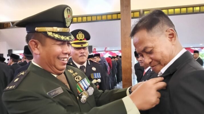 Banyuwangi – Kasdim 0825/Banyuwangi, Mayor Kav Suprapto, menghadiri upacara penganugerahan Tanda Kehormatan Satya Lencana Karya Tahun Anggaran 2025 yang diberikan kepada Aparatur Sipil Negara (ASN) di lingkungan Pemerintah Kabupaten Banyuwangi. Kegiatan tersebut berlangsung khidmat di Pendopo Sabha Swagata Blambangan, Kamis (14/08/2025).