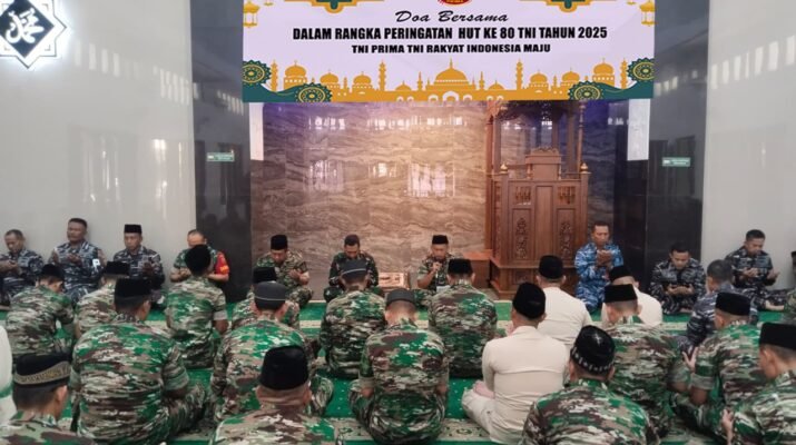 Dalam suasana khidmat, seluruh peserta memanjatkan doa bersama sebagai ungkapan rasa syukur atas perjalanan panjang TNI yang telah mengabdi selama delapan dekade untuk bangsa dan negara. Doa juga dipanjatkan agar TNI senantiasa diberi kekuatan dan keberkahan dalam menjalankan tugas menjaga keutuhan Negara Kesatuan Republik Indonesia (NKRI).