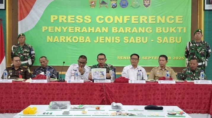 Penemuan ini diumumkan dalam press conference di Aula Panglima Sudirman Makodim 0825, Senin (8/9/2025). Komandan Kodim 0825/Banyuwangi, Letkol Arh Joko Sukoyo, S.Sos., M.Han., memimpin langsung kegiatan dan secara resmi menyerahkan barang bukti kepada Kasat Narkoba Polresta Banyuwangi, Kompol Nanang Sugiyono, S.H., M.H. Acara tersebut turut dihadiri pejabat BNNK Banyuwangi, Kejaksaan Negeri, unsur TNI-AL, serta perwakilan pemerintah daerah.