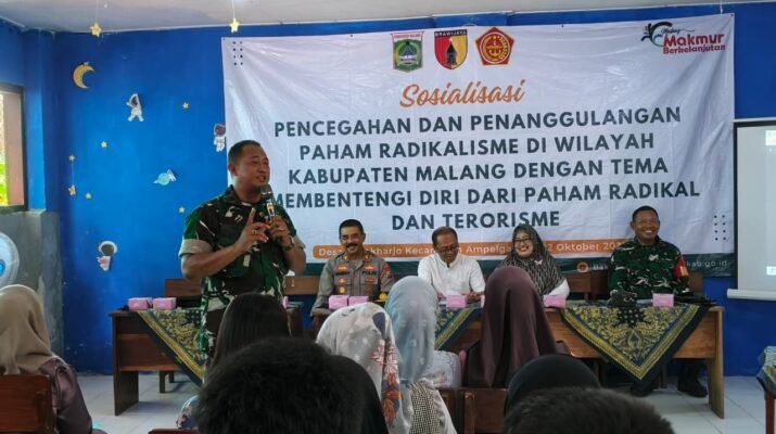Kapten Arh Akhmad Zainuri, salah satu Satgas TMMD yang juga menjabat Danramil 0818/17 Ampelgading, memimpin langsung kegiatan penyuluhan tentang bahaya radikalisme dan terorisme kepada ratusan siswa-siswi Sekolah Menengah Kejuruan (SMK) 1 PGRI Ampelgading. Kegiatan ini merupakan langkah proaktif dalam melindungi generasi muda, yang rentan terhadap penyebaran paham-paham menyimpang melalui media digital.