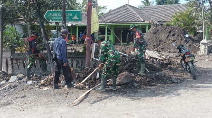 Lumajang – Upaya pemulihan pascaerupsi Gunung Semeru kembali diperkuat melalui aksi nyata para personel TNI yang tergabung dalam Kodim 0821 Lumajang dan Yonif 527/BY,