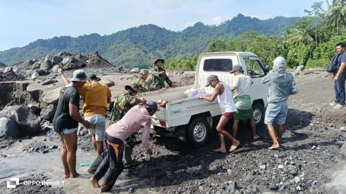 Lumajang – Di tengah cuaca yang tidak menentu dan aktivitas lahar dingin yang masih terjadi pasca-erupsi Gunung Semeru, Personel TNI kembali menunjukkan komitmen kemanusiaan mereka.