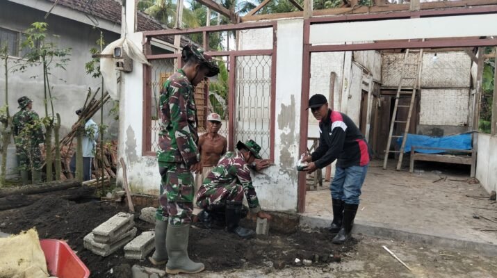 Banyuwangi – Anggota Kodim 0825/Banyuwangi bersama masyarakat setempat melaksanakan kegiatan Karya Bakti berupa pembangunan rumah milik warga di Desa Siliragung, Kecamatan Siliragung, Banyuwangi. Kegiatan