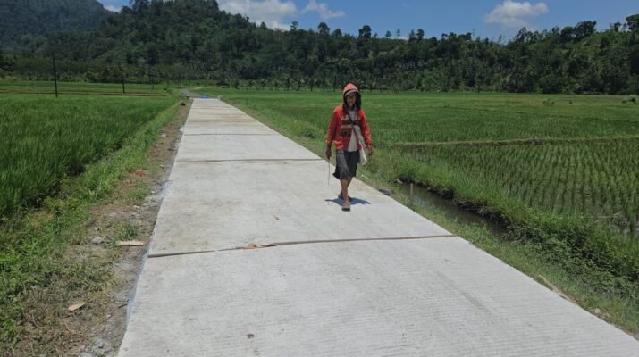 Jalan yang sebelumnya berupa tanah dan sulit dilewati, kini berubah menjadi jalur beton yang mulus dan kokoh. Kondisi ini secara langsung mempercepat dan mempermudah