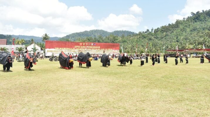 Suasana Lapangan Desa Lebakharjo, Kecamatan Ampelgading, Kabupaten Malang, tampak semarak saat digelar pembukaan TNI Manunggal Membangun Desa (TMMD) ke-126 Kodim 0818/Malang-Batu pada Rabu Kemarin