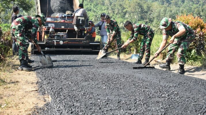 Satgas TMMD ke-126 Kodim 0818/Malang Batu Melaksanakan Pengaspalan Jalan di Dusun Sukomaju Dalam rangka mendukung percepatan pembangunan infrastruktur desa, anggota Satgas TNI Manunggal Membangun Desa (TMMD) ke-126 Kodim 0818/Malang Batu melaksanakan pengaspalan jalan di Dusun Sukomaju, Desa Lebakharjo, Kecamatan Ampelgading, Kabupaten Malang. Kamis 9/10/2025.