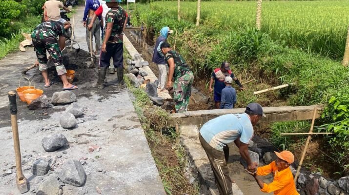 Anggota Satgas TNI Manunggal Membangun Desa (TMMD) ke-126 Kodim 0818/Malang-Batu terus menunjukkan dedikasi tinggi dalam melaksanakan pekerjaan peningkatan saluran irigasi di Desa Lebakharjo, Kecamatan Ampelgading, Kabupaten Malang. Kegiatan ini merupakan salah satu sasaran fisik utama dalam program TMMD yang bertujuan untuk meningkatkan kesejahteraan masyarakat melalui pembangunan infrastruktur pertanian.