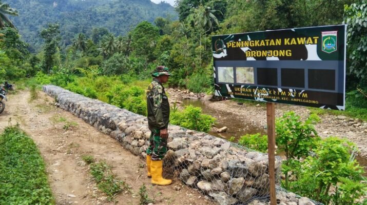 Di tengah tingginya intensitas hujan yang melanda wilayah Kecamatan Ampelgading, Kabupaten Malang, Satgas TNI Manunggal Membangun Desa (TMMD) ke-126 Kodim 0818/Malang-Batu terus menunjukkan semangat