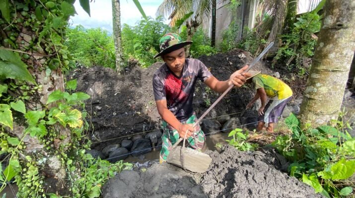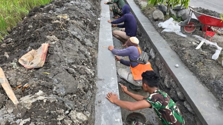 Kegiatan TNI Manunggal Membangun Desa (TMMD) ke-126 Kodim 0818/Malang-Batu terus berlanjut dengan semangat gotong royong. Kali ini, personel Yonzipur 5/Abw bersama prajurit Kodim 0818 dan masyarakat Dusun Krajan 1B, Desa Lebakharjo, Kecamatan Ampelgading, Kabupaten Malang, melanjutkan pekerjaan pembangunan saluran drainase yang menjadi salah satu sasaran fisik utama program TMMD tahun ini.