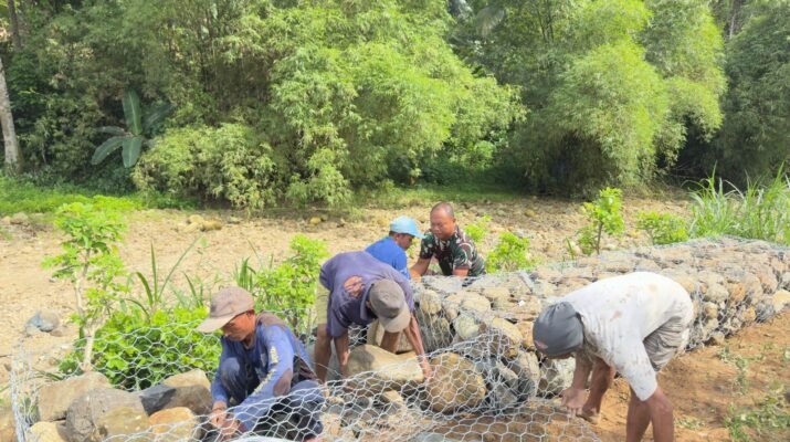 Pemasangan Bronjong Satgas TMMD 126 Perkuat Bantaran Sungai Lebakharjo Cegah Banjir