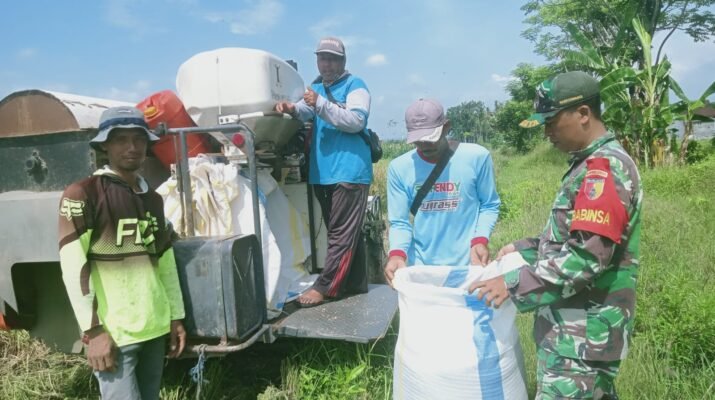 Banyuwangi – Dalam upaya mendukung ketahanan pangan nasional, Sertu Didik Budi Prasetyo, Babinsa Kelurahan Sobo Koramil 0825/01 Banyuwangi, turun langsung ke sawah guna membantu petani saat kegiatan panen padi di wilayah kelurahan binaannya, Rabu (12/11/2025).